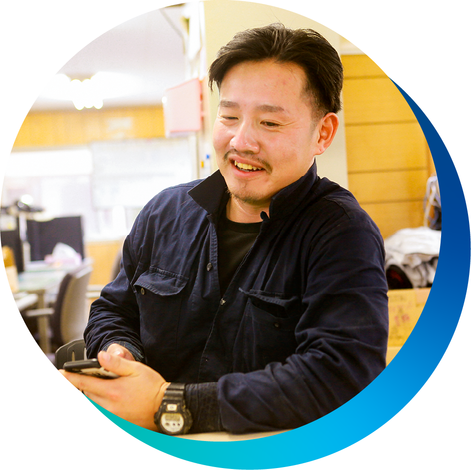 高校時代、学校の先生からの紹介で地元の丸井建設工業でアルバイトを始め、高校卒業後、そのまま正社員として入社。当初は資材運びなどの補助作業から始め、先輩に教わりながら徐々に現場の仕事をマスター。また、昼時に味噌汁を配ったり、灰皿を片付けたり、作業場の掃除をしたり・・。現場でいろいろな経験をすることで、社会人としてもいい勉強になりました。